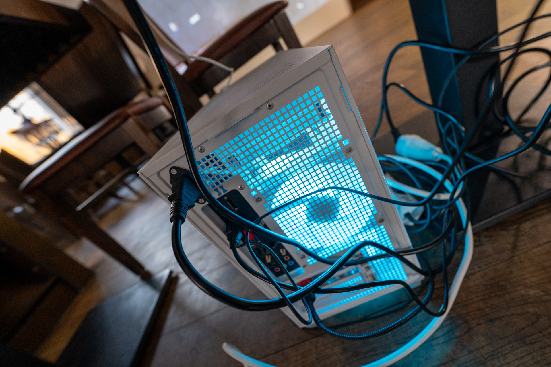 Die Werkschau der neuen immersiven Arbeiten Borderless und Fragmentum war ein super Erfolg. Tolle Besucher die ausgiebig und mit Spaß die Werke getestet haben. Als die Besucher eintrafen war es auch endlich dunkel genug um die Leuchtkraft der Installation richtig zur Geltung kommen zu lassen. Auch Danke an alle Helfer, an F. und M. , an meine Familie und besonders an meinen Bruder der seine Gaststätte super vorbereitet hatte.