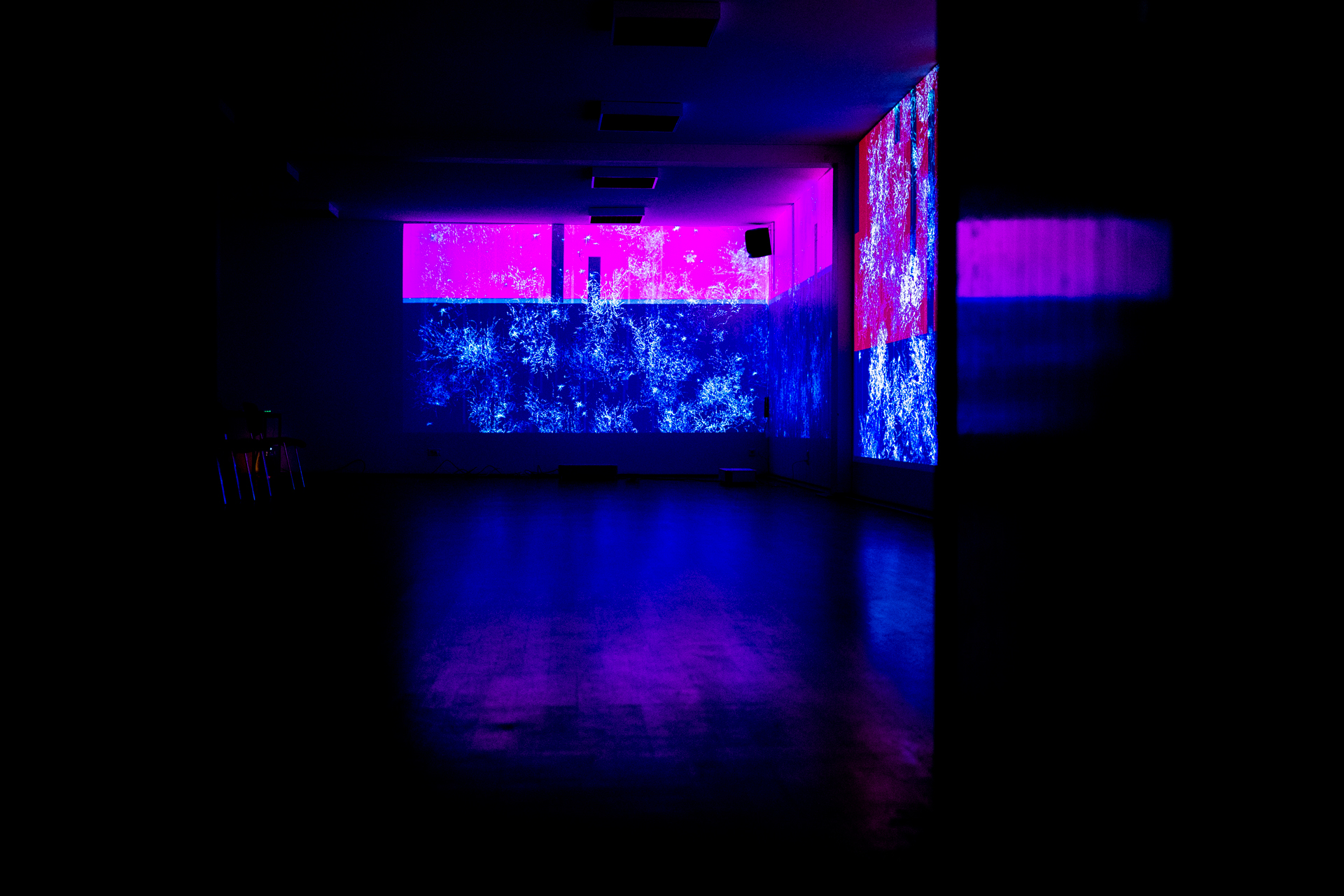Die Werkschau der neuen immersiven Arbeiten Borderless und Fragmentum war ein super Erfolg. Tolle Besucher die ausgiebig und mit Spaß die Werke getestet haben. Als die Besucher eintrafen war es auch endlich dunkel genug um die Leuchtkraft der Installation richtig zur Geltung kommen zu lassen. Auch Danke an alle Helfer, an F. und M. , an meine Familie und besonders an meinen Bruder der seine Gaststätte super vorbereitet hatte.