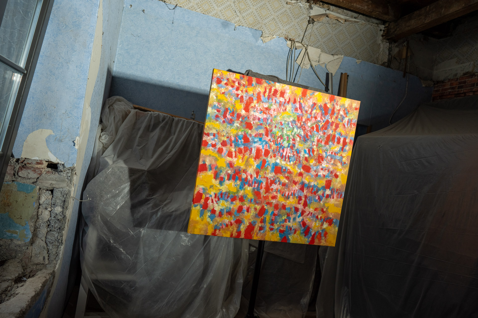 Serie Verlust 2023 von Tobias Post on Tour 2024 in der Halle205 freiRaum für kunst & kultur,  ein denkmalgeschütztes Jugendstilgebäude, dem ehemaligen Pferdestall der Brauerei Müser in Bochum Langendreer. Ausstellung in dem unteren großen Raum, dem ehemaligen eigentlichen Pferdestall.  Herzlichen Dank an das tolle Team von Halle205.