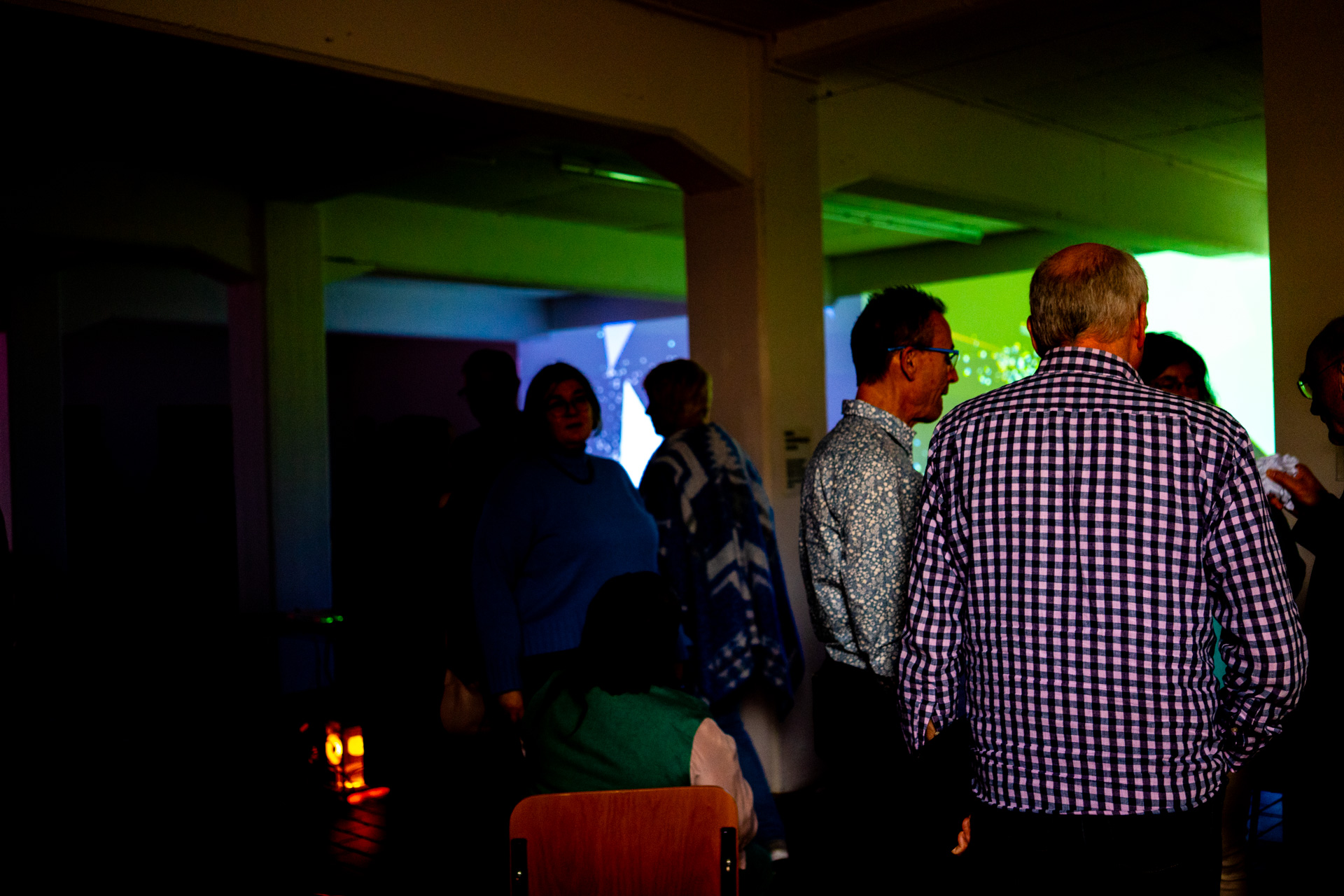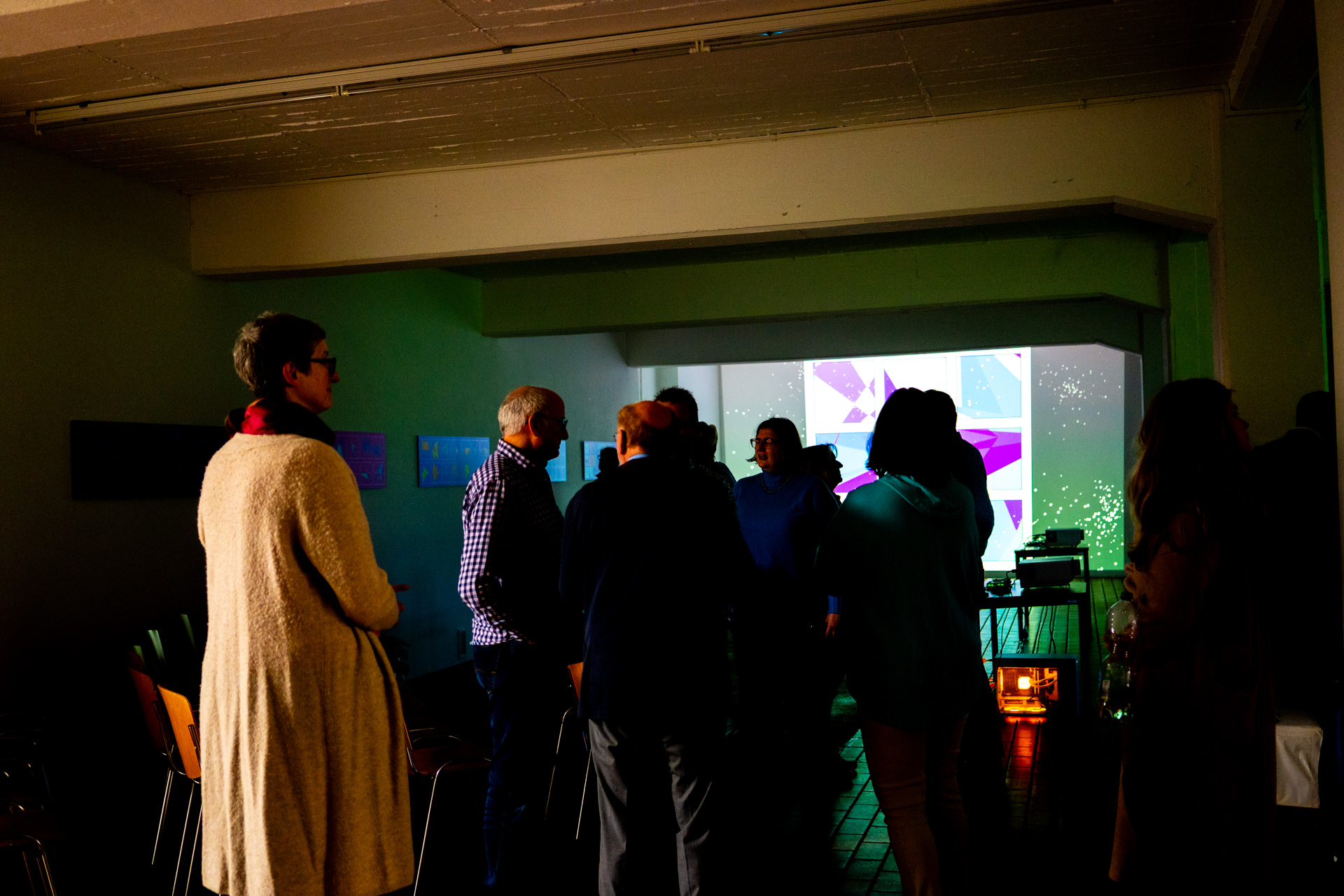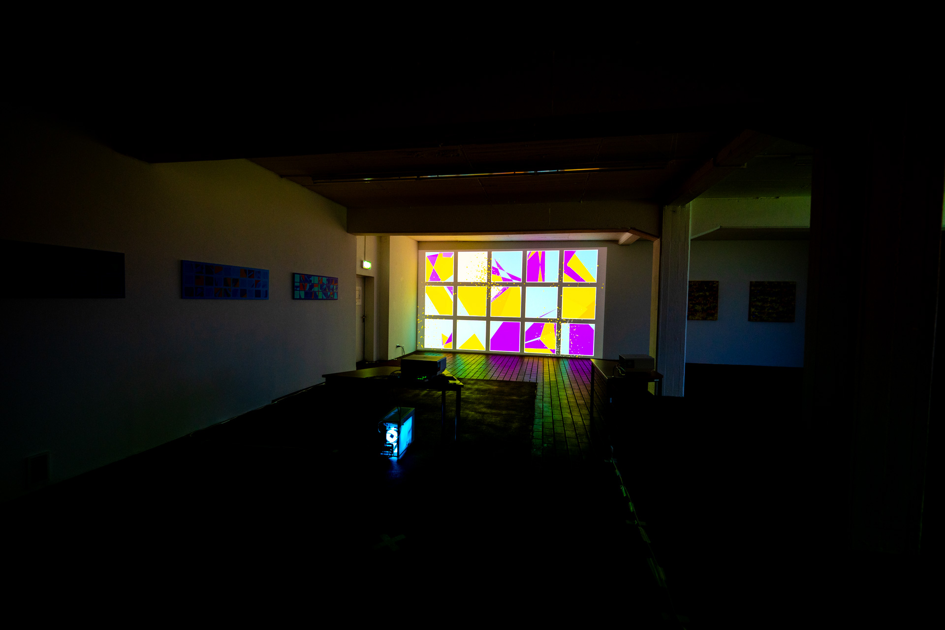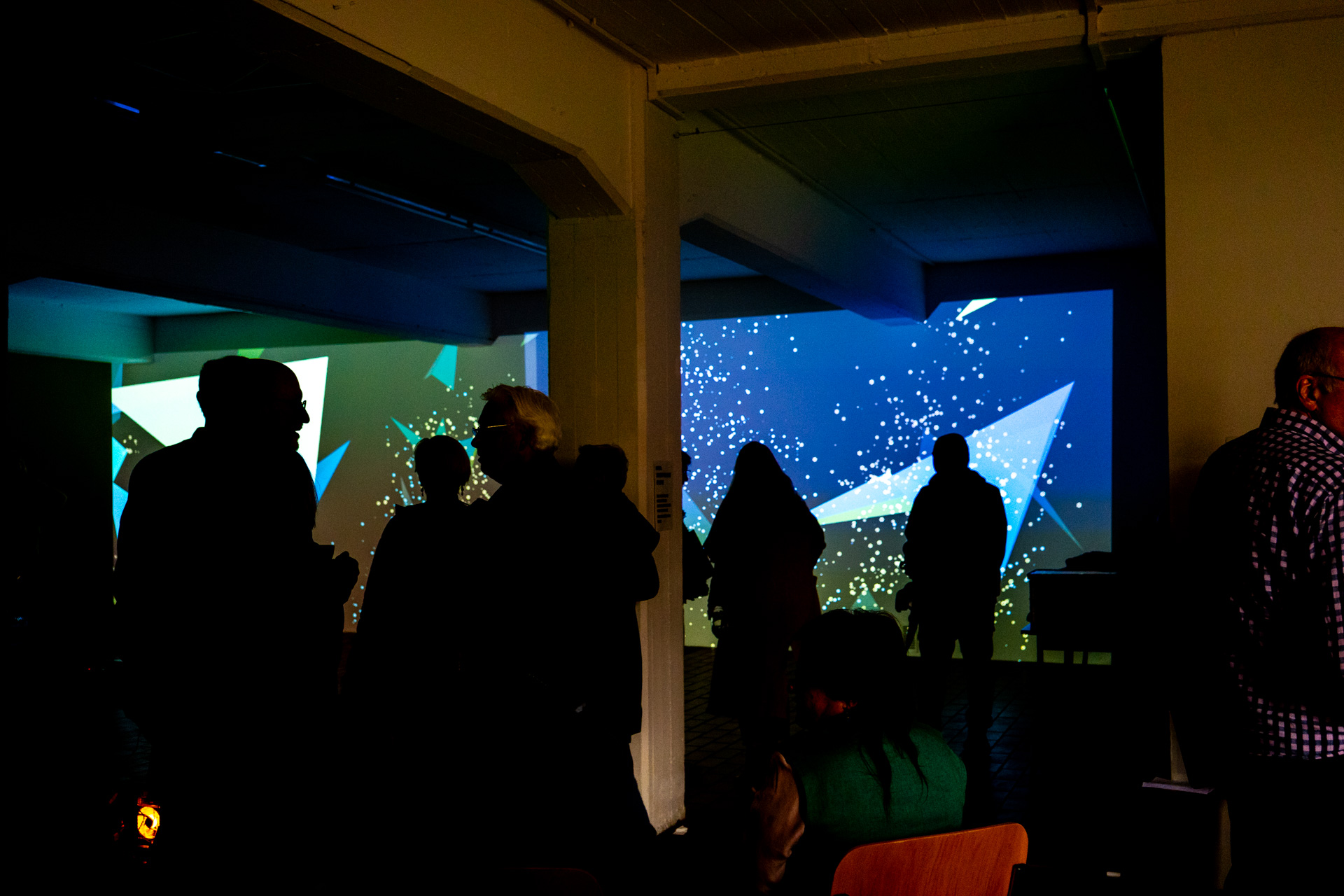 Die Werkschau der neuen immersiven Arbeiten Borderless und Fragmentum war ein super Erfolg. Tolle Besucher die ausgiebig und mit Spaß die Werke getestet haben. Als die Besucher eintrafen war es auch endlich dunkel genug um die Leuchtkraft der Installation richtig zur Geltung kommen zu lassen. Auch Danke an alle Helfer, an F. und M. , an meine Familie und besonders an meinen Bruder der seine Gaststätte super vorbereitet hatte.