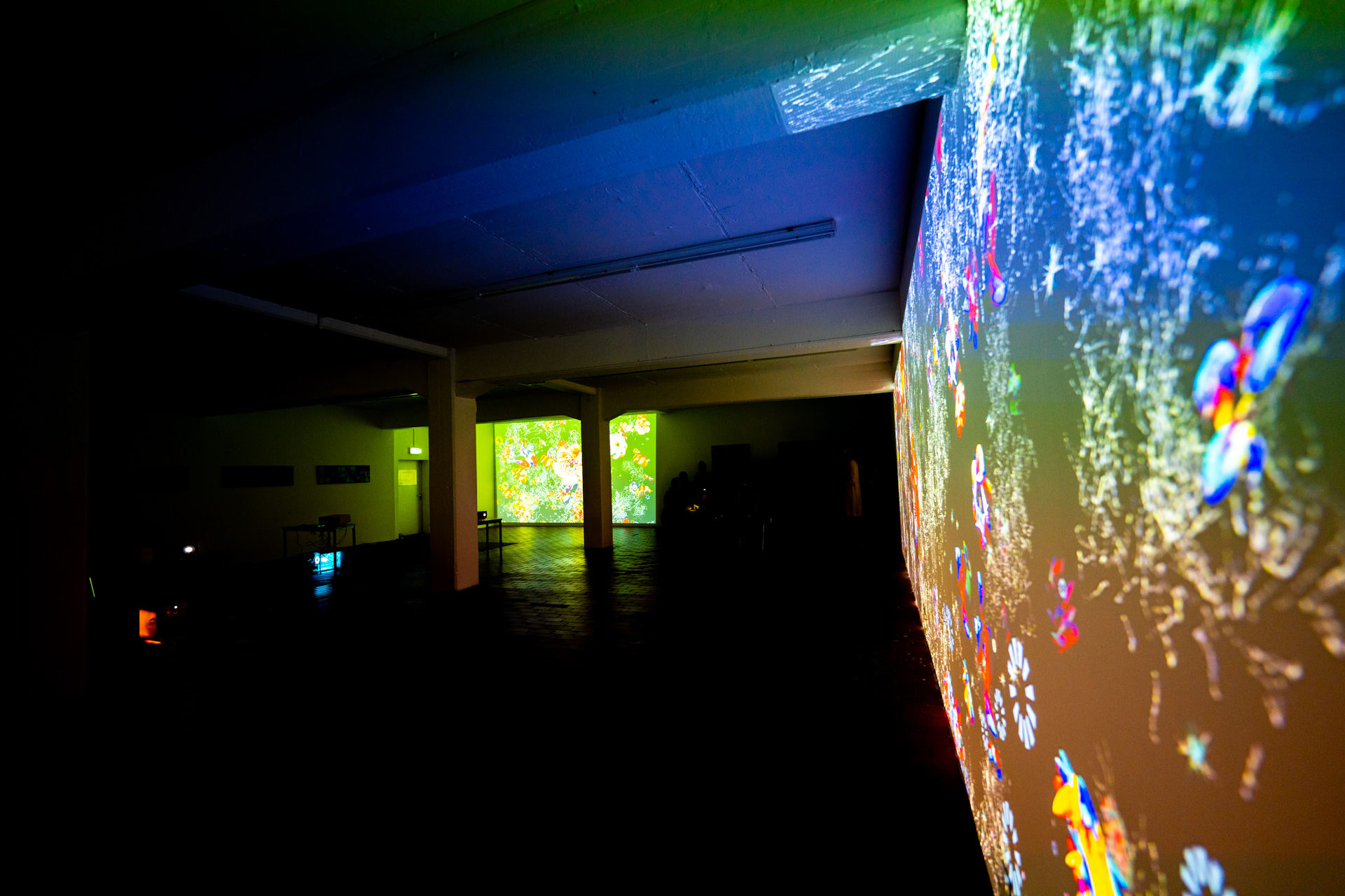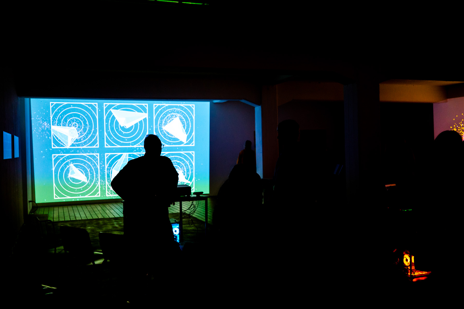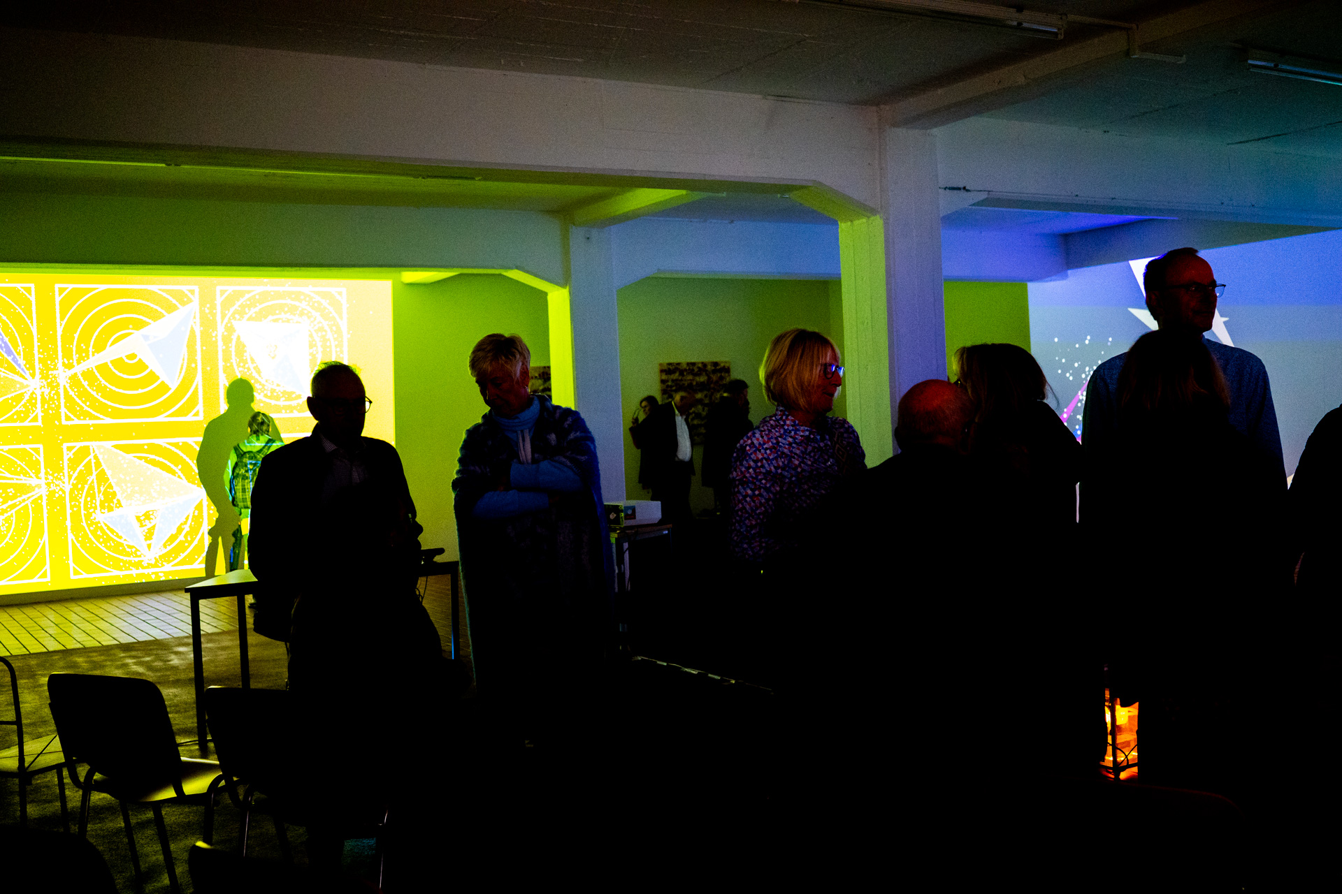Die Werkschau der neuen immersiven Arbeiten Borderless und Fragmentum war ein super Erfolg. Tolle Besucher die ausgiebig und mit Spaß die Werke getestet haben. Als die Besucher eintrafen war es auch endlich dunkel genug um die Leuchtkraft der Installation richtig zur Geltung kommen zu lassen. Auch Danke an alle Helfer, an F. und M. , an meine Familie und besonders an meinen Bruder der seine Gaststätte super vorbereitet hatte.