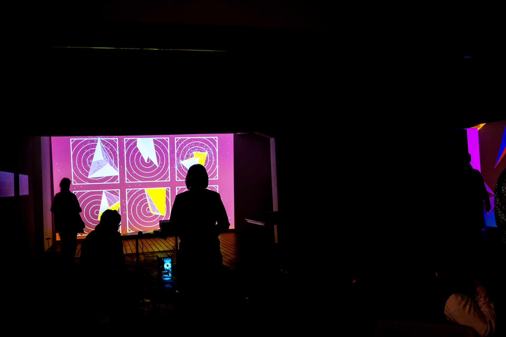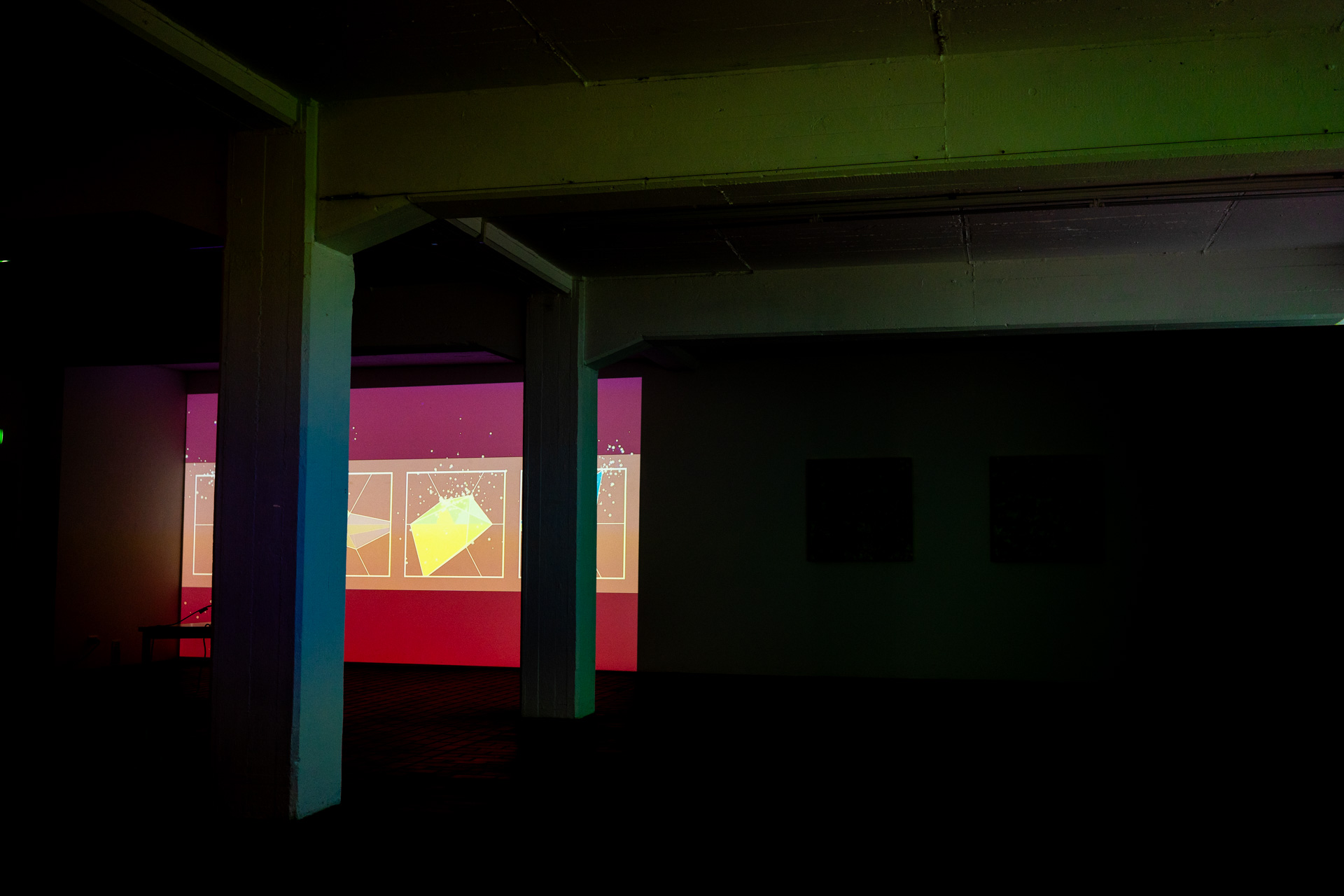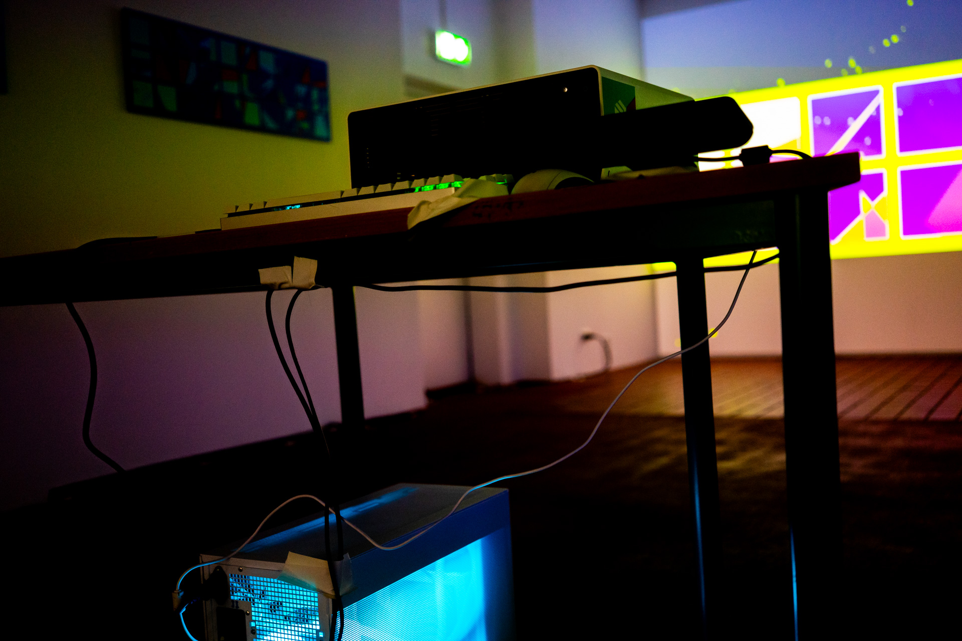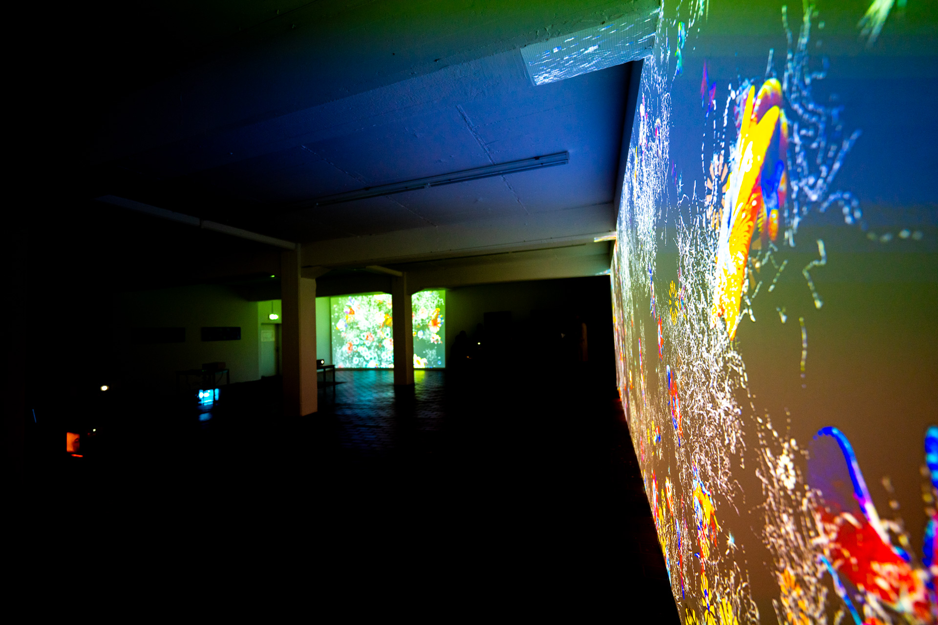 Die Werkschau der neuen immersiven Arbeiten Borderless und Fragmentum war ein super Erfolg. Tolle Besucher die ausgiebig und mit Spaß die Werke getestet haben. Als die Besucher eintrafen war es auch endlich dunkel genug um die Leuchtkraft der Installation richtig zur Geltung kommen zu lassen. Auch Danke an alle Helfer, an F. und M. , an meine Familie und besonders an meinen Bruder der seine Gaststätte super vorbereitet hatte.