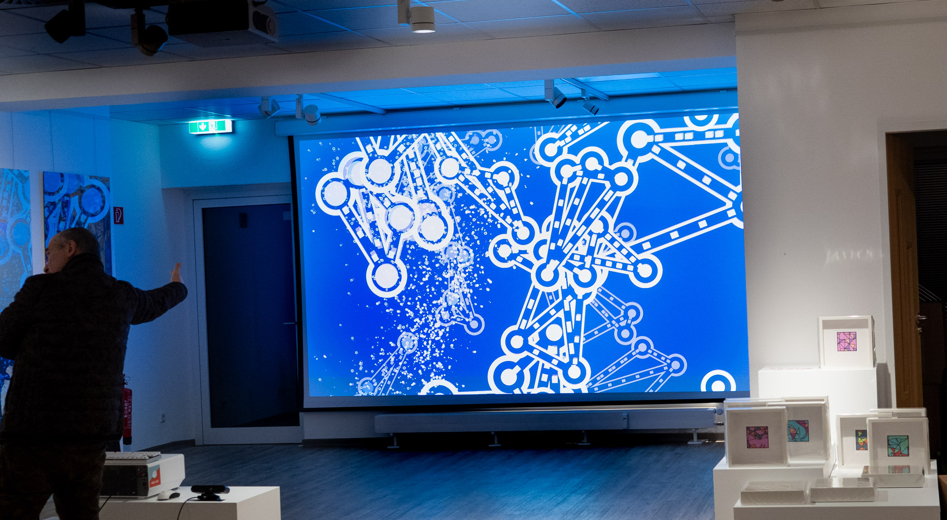 Die Werkschau der neuen immersiven Arbeiten Borderless und Fragmentum war ein super Erfolg. Tolle Besucher die ausgiebig und mit Spaß die Werke getestet haben. Als die Besucher eintrafen war es auch endlich dunkel genug um die Leuchtkraft der Installation richtig zur Geltung kommen zu lassen. Auch Danke an alle Helfer, an F. und M. , an meine Familie und besonders an meinen Bruder der seine Gaststätte super vorbereitet hatte.